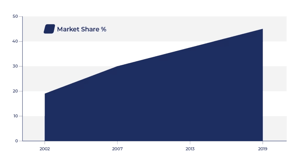 Figure 1: Canada Mortgage Brokers’ Market Share Percentage from 2002 to 2019